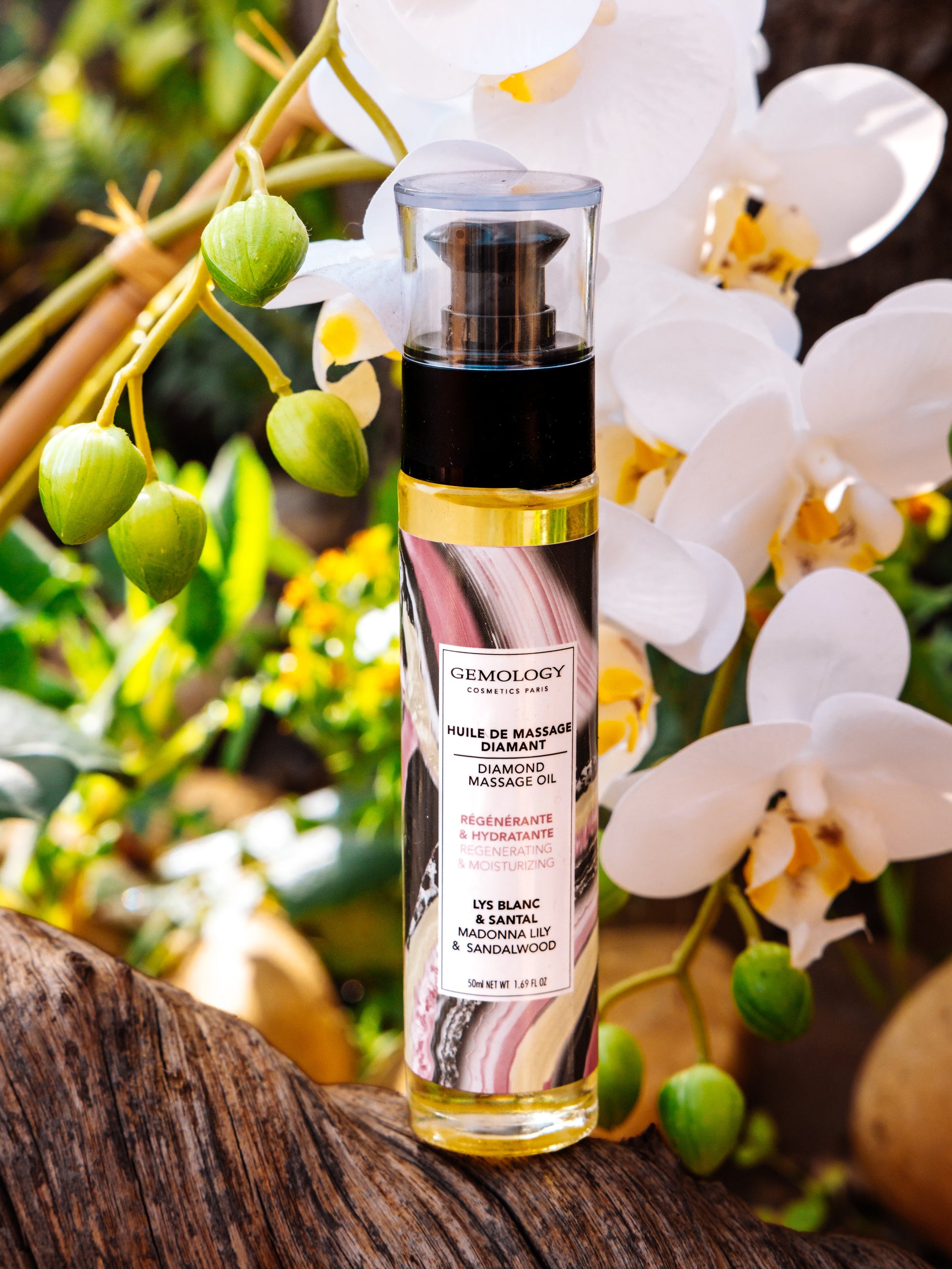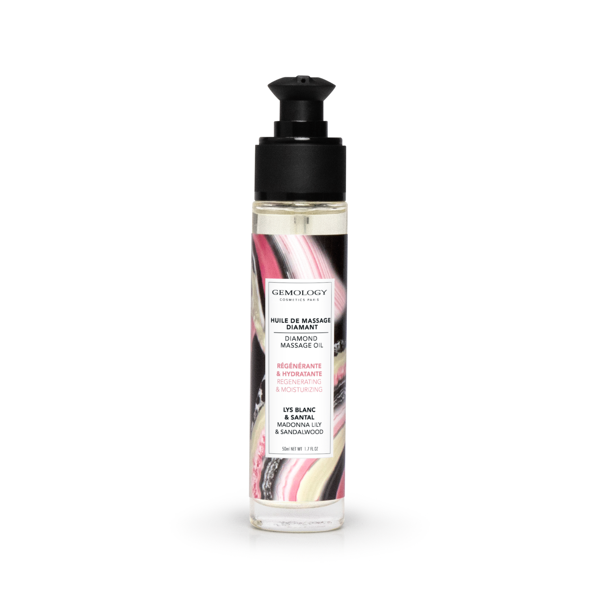Šis masažinis aliejus turtingas savo naudingosiomis savybėmis dėl jame esančių augalinių ir eterinių aliejų, todėl masažai tampa lengvesni ir veiksmingesni, oda regeneruota ir pamaitinta. Deimanto masažinis aliejus išsiskiria išskirtiniu lelijų ir sandalmedžio kvapu, suteikiančiu svaiginančius pojūčius.